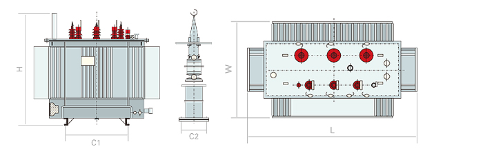 ●Transformer oil tank is composed of corrugated walls with powder painted surface and reinforced with film. Corrugated cooling fin not only has cooling function, but also has “breathing” function, the elasticity of corrugated cooling fin make it adapt to the change of oil volume due to change of temperature. So this hermetically sealed transformer does not have oil conservator, which decreases the height of transformer.