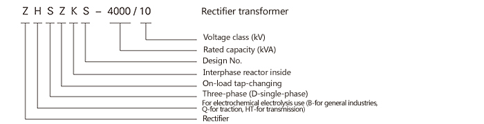 Model & capacity | Primary voltage | Secondary voltage | Voltage regulating mode | Voltage regulating progression | Capacity of external saturated reactor (kvar) | Short-circuit impedance |