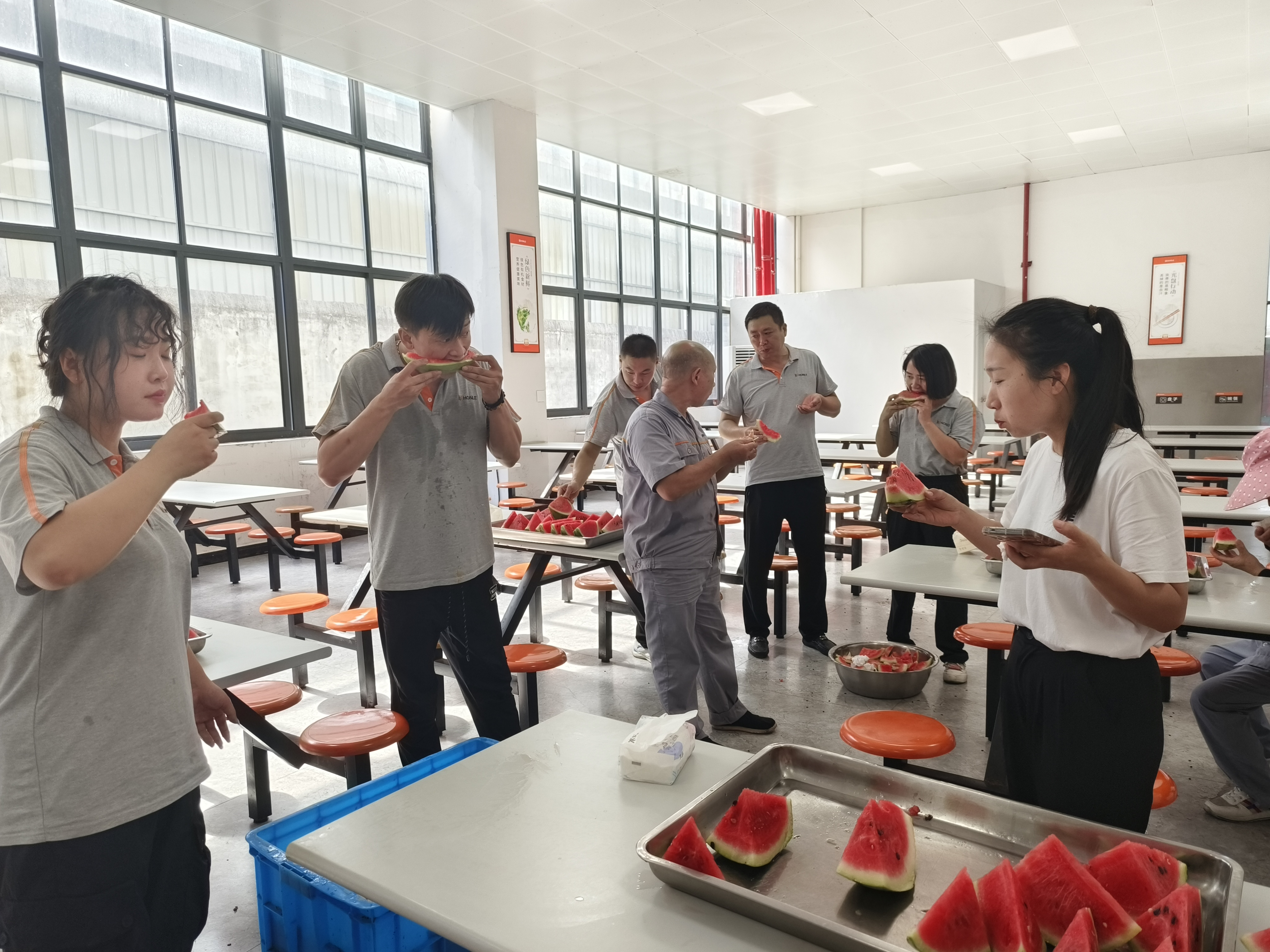 看著員工們享受著一塊塊清涼又可口的西瓜,各車(chē)間管理人員也對(duì)完成生產(chǎn)目標(biāo)增添了信心。