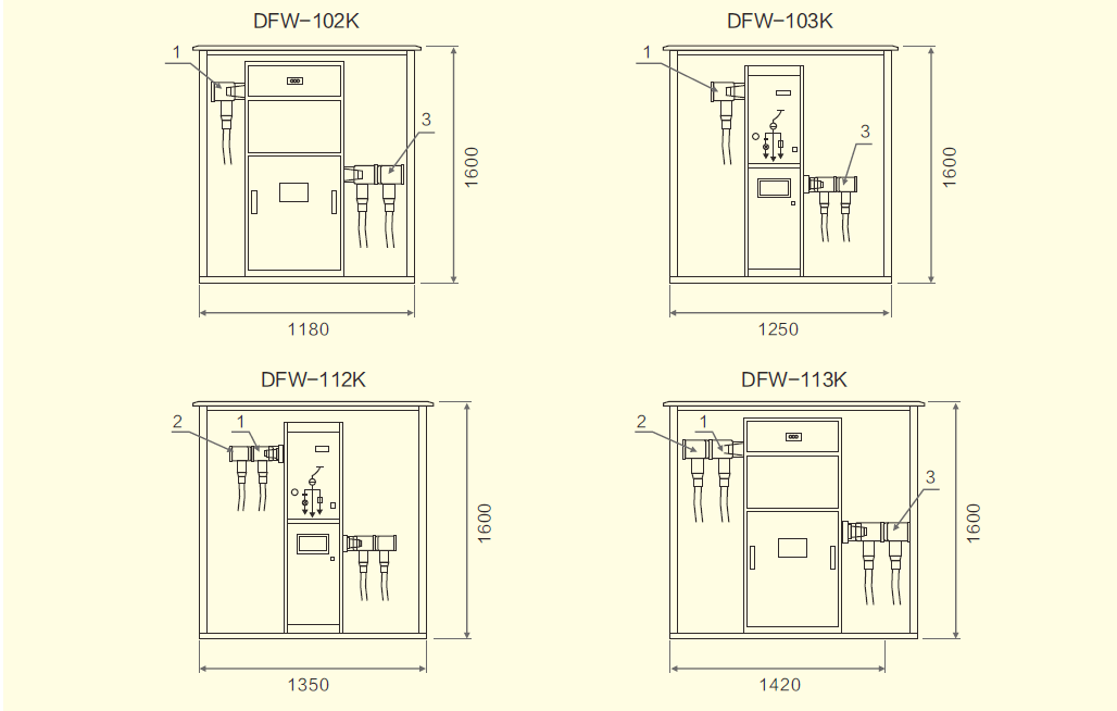 2.4可配一臺或多臺SF6負(fù)荷開關(guān)。接線方式靈活多樣,分支出線最多可達(dá)8回路;